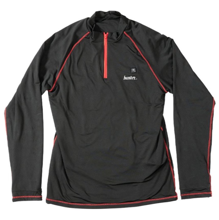 - Hunters värmetröja är utrustad med tre värmepaneler som regleras med hjälp av en tryckknapp på bröstet och det går att välja mellan tre olika temperaturer.