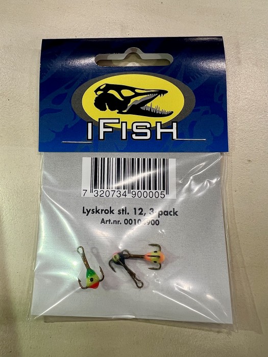 IFish Lyskrok i storlek 12 levereras i ett 3-pack och är avsedd för isfiske eller traditionellt vinterfiske. Krokarna är utrustade med lysande detaljer som attraherar fisk i mörkare vattenförhållanden eller under isen. Storleken lämpar sig särskilt väl för mindre arter som abborre och mört.