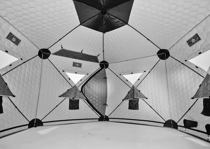- Rymligt och stabilt: Den femkantiga designen ger gott om utrymme för personer, utrustning och värmare.