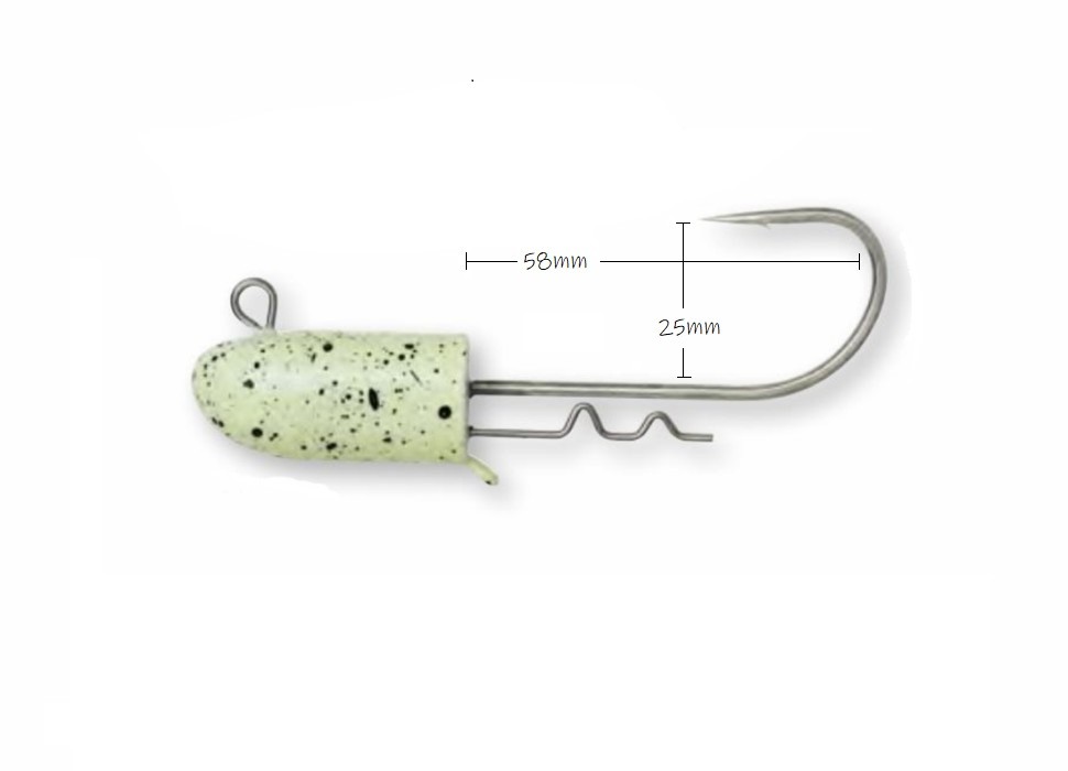 De är målade med en hållbar glowfärg som fungerar som extra atraktion till din valda jiggkropp. Den nedre delen av jigghuvudet har en extra ring för enkel montering av stingerkrokar vid behov.