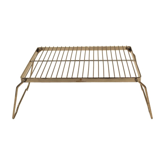 Gjord i rostfritt stål och med utfällbara ben. Detta galler är perfekt för det mindre sällskapet. Medföljer en skyddspåse att bära och förvara gallret i.