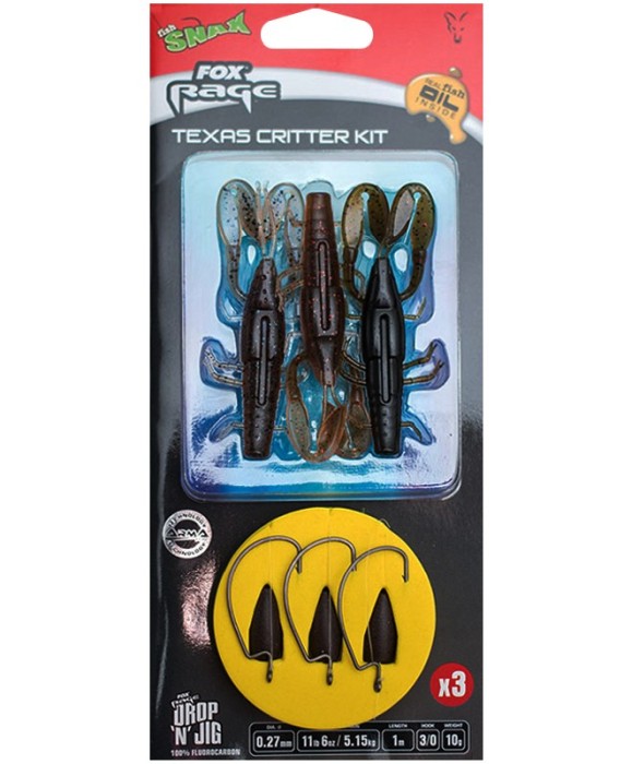 FOX Rage Texas Critter Kit är ett färdigt kit med kräftjiggar tillsammans med Texasrigg, perfekt för den kräftätande storabborren!